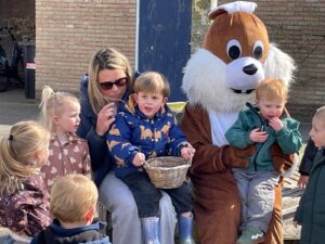 Tussen het speelgoed… achter een boom… of zie je daar ineens twee lange oren? Vandaag was het extra gezellig bij Spring in ’t Veld. De peuters kregen bezoek van de paashaas en gingen samen op zoek naar verstopte paaseieren. Als je twee of drie jaar oud bent, is dat best spannend. Maar ook zó leuk dat je het niet snel zult vergeten!